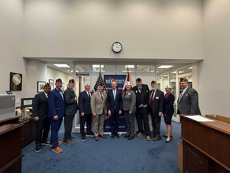 Tuesday March 3rd, the The American Legion Department of Florida joined forces with the Veterans of Foreign Wars Department of Florida for a productive joint meeting with U.S. Senators Ashley Moody and Rick Scott.