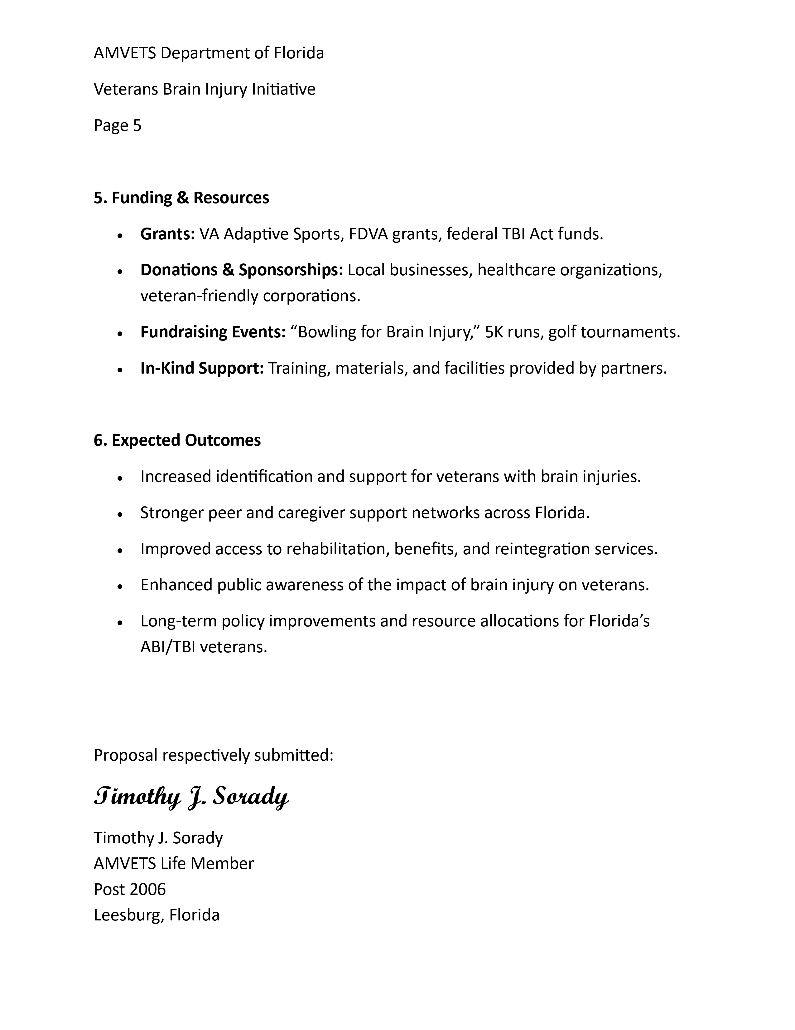 For your convenience, attached you will find the original proposal submitted to the Executive Board of FL AMVETS.