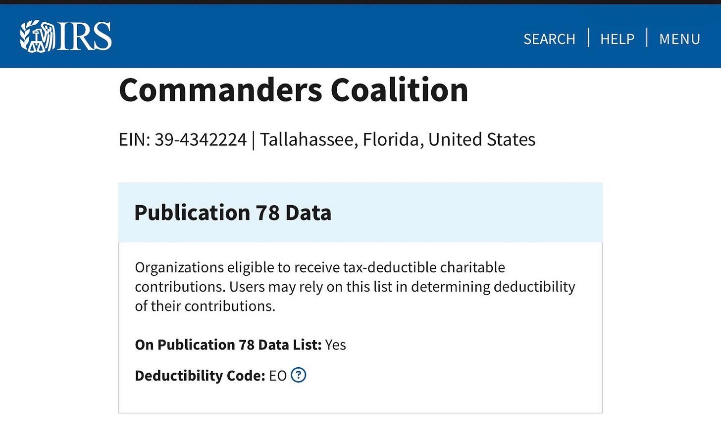 Commanders Coalition Receives 501c19 Nonprofit Status From the IRS ⚖️