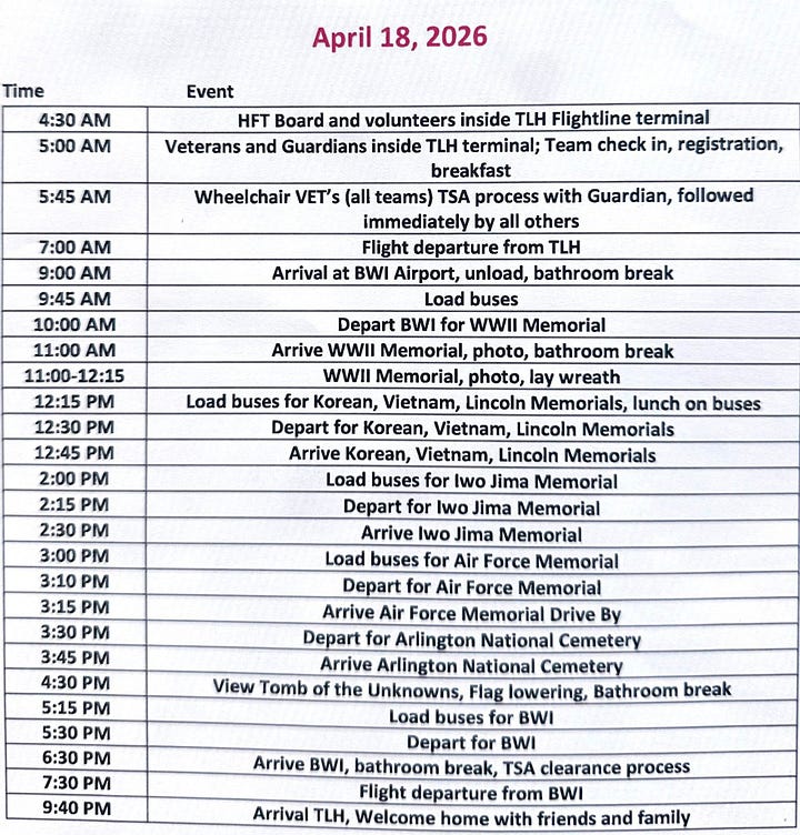 Honor Flight Tallahassee is TONIGHT π¬