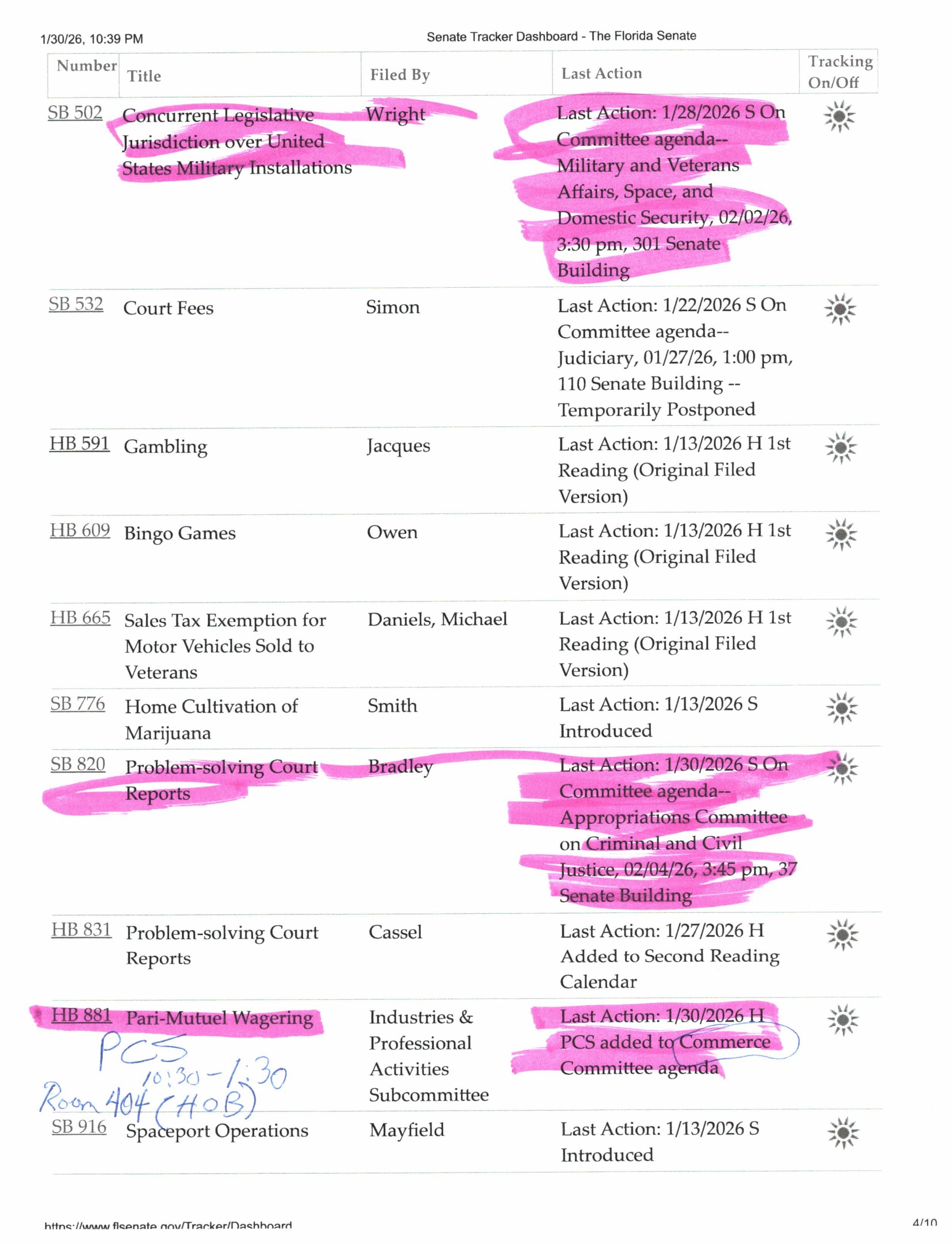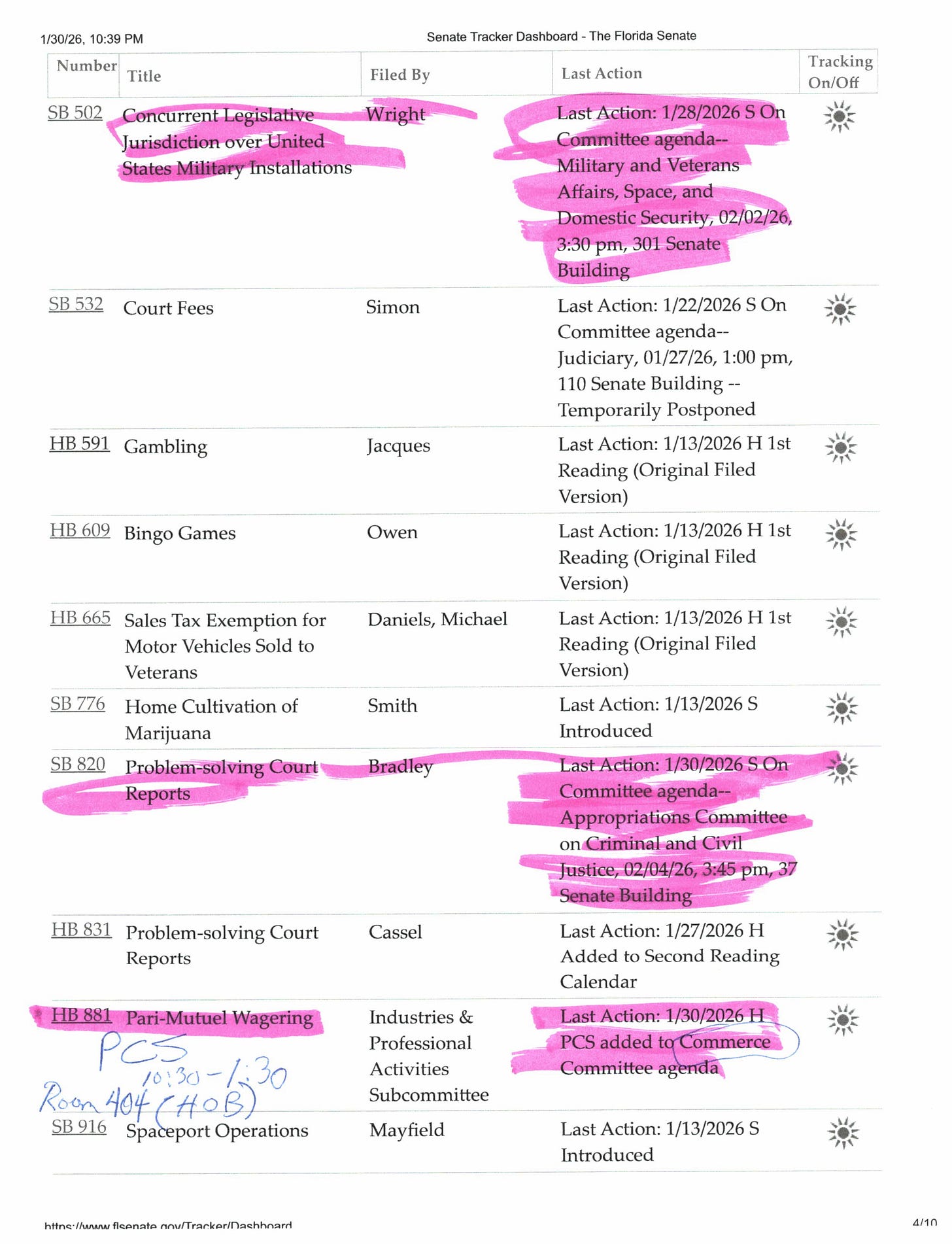Dan highlighted the bills in “PINK” that are being heard in a committee this week.
